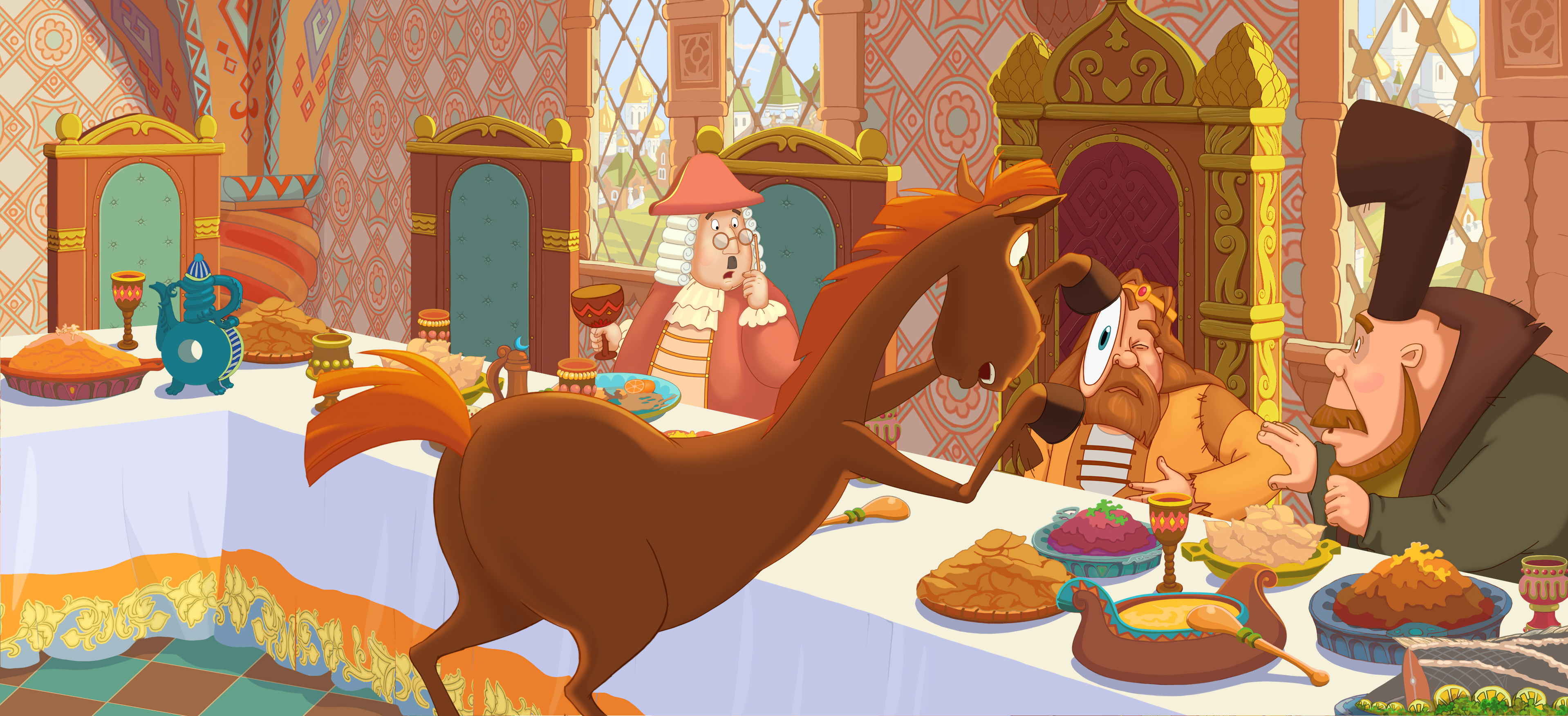 Князь Киевский решил назначить наследника престола, только вот незадача – кто это может быть? Родственник, друг семьи или, может быть, заморская принцесса? Недолго думая, Князь–батюшка выбирает почти принцессу, а главное родственницу – племянницу Забаву. Нынче она вместе со своим мужем Елисеем (помните верного ученика Добрыни Никитича?) получает образование в далёком Царьграде, где правит коварный Василевс. Чтобы вернуть наследницу, на родные просторы за тридевять земель в спешном порядке отправляются три богатыря и, конечно же, главный придворный конь Юлий.