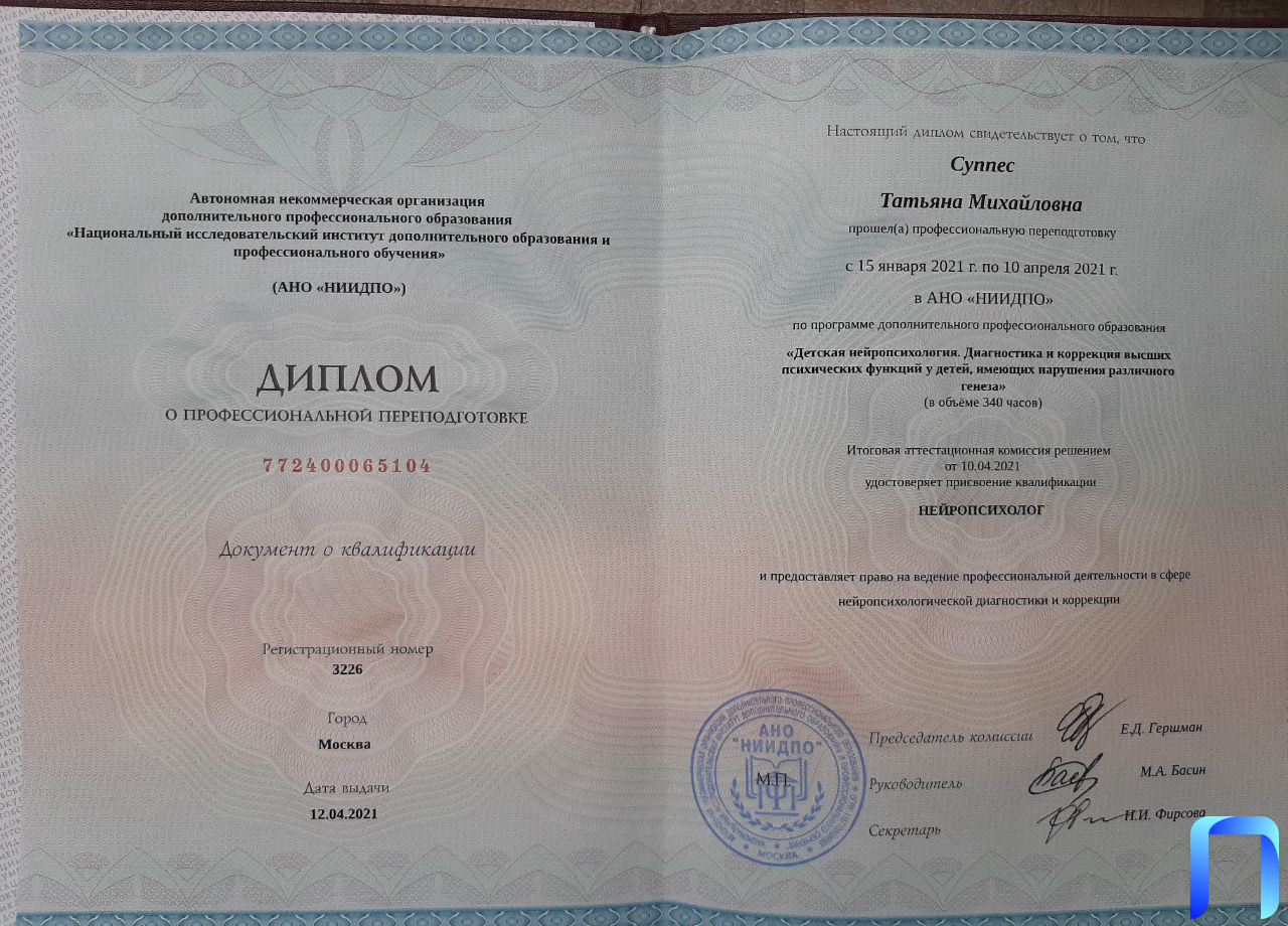 Уважаемые родители, я оказываю услуги по устранению речевых растройств у детей 4-11 лет. Вы можете записаться ко мне на прием , если у вас одно из следующих нарушений: - ребенок не говорит - ребенок неправльно произносит один или несколько звуков - речь ребенка непонятна окружающим - есть нарушения письма и чтения (дисграфия, дислексия, дизорфография) - низкая успеваемость в школе Провожу консультации по вопросам речевого развития. Работаю с такими диагнозами как: - дислалия - дизартрия - диспраксия - дисграфия дислексия - алалия - зпрр Продолжительность занятий: 4-5 лет 30 минут 5-7 лет 40 минут 7-10 лет 45 минут В работе также использую РЕЗЕТ – метод балансировки челюстного сустава (ВЧС), безболезненный и расслабляющий. В результате использования техники Резет после расслабления челюстных мышц происходит: -избавление от головных болей/мигреней; - уравновешивание эмоционального состояния; - улучшение способности к обучению у детей; снятие напряжение в тела; - восстановление здорового и спокойного сна; - решение проблем, связанных с носовыми пазухами; - снижение гиперактивности у детей; Не имеет противопоказаний!